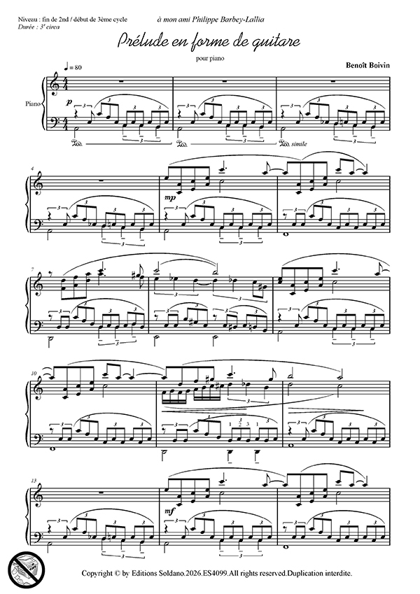 “Prélude en forme de guitare” pour piano de Benoît Boivin.